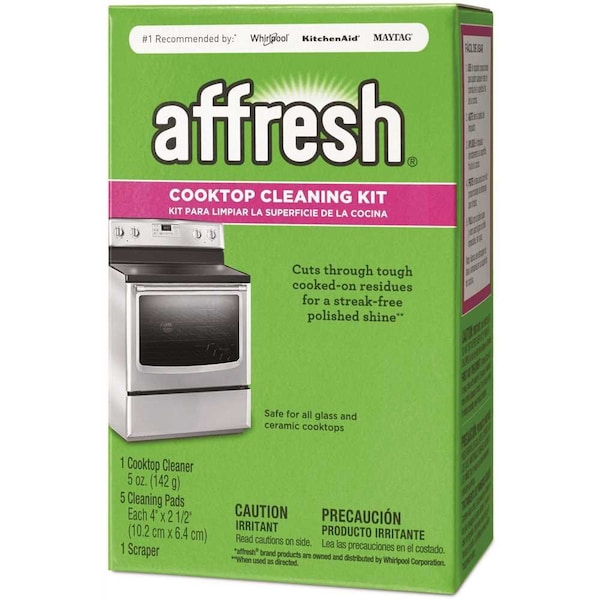 Affresh Cooktop Cleaner is specially formulated to cut through tough, cooked-on residues that can linger on your cooktop. Non-abrasive cleaner is safe for all glass and ceramic cooktops. Use monthly or as needed to polish your cooktop with a streak-free shine.No.1 recommended by: Whirlpool, KitchenAid and Maytag brands Affresh brand products are owned and distributed by Whirlpool CorporationCuts through tough cooked-on residues for a streak-free polished shineAffresh polishes your cooktop to keep it looking like newAffresh cooktop cleaner helps remove soil build-up and cooked-on spills without scratching or harming cooktop surfacesAffresh includes a non-abrasive cleaner that is safe for all glass and ceramic cooktopsUse Affresh cooktop cleaner monthly or as needed to keep your cooktop looking like new. CALIFORNIA RESIDENTS ONLY - WARNING: Cancer and Reproductive Harm - www.P65Warnings.ca.gov