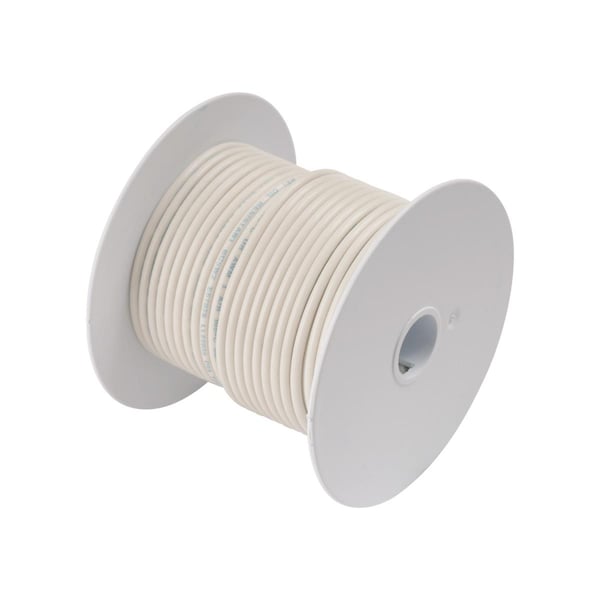 Primary Wire, 14 AWG, 1C C, White, Vinyl, Stranded, 600V, 100 ft.