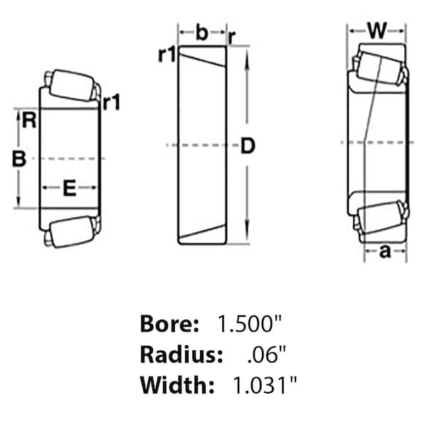833124M1 Universal Fit Tapered Roller Bearing Cone 15 Bore 006 Radius