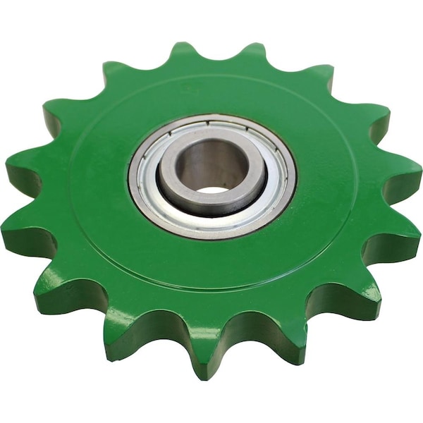 One New Aftermarket Replacement Idler Sprocket Fits Mower Conditioners 1600, 1600AFits John DeereCornheads 243, 244, 343, 344, 443, 444, 483, 493 SN 665201670356, 494 BSN 670356, 543, 546, 583, 592 BSN 659999, 594, 642, 643, 644, 645, 683, 692 BSN 670356, 693 BSN 670356, 693SH BSN 670356, 694 BSN 670356, 842, 843, 883, 892 BSN 670356, 893 BSN 670356, 894 BSN 670356, 1092 BSN 659999, 1243 BSN 630750, 1290 BSN 659999, 1291 BSN 659999, 1293 BSN 659999Fits Round Balers 335, 375, 540, 545, 550, 565, 575Fits Forage Harvesters 5200, 5400, 5440, 5460, 5720, 5730, 5820, 5830, 6610, 6650, 6710, 6750, 6810, 6850, 6910, 6950Tech InfoInside Diameter 0638For Size 60 Chain15 ToothReplaces Part Numbers AE27909