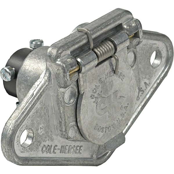 One New Aftermarket Tech Info:-Arrowhead: CH1257; Cole Hersee: 1257, 1257BX-: 4 Split Pins in Socket@ Spring Loaded Die Cast Debris Cap@ 2 6.7mm Mounting Holes-74.6mm Apart on Center@ Socket Body Measures 31mm in Diameter@ Wires Connect by Screw Terminals, NO. OF WIRES: 4, PACKAGING: Box, WEATHER SEALED: FALSE, WIRE GAUGES: 12Replaces Part Numbers: CHS-1257BX