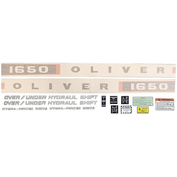 One New Aftermarket Oliver 1650 Vinyl Cut Decal SetFits Oliver Models 1650Tech InfoCaution Inspect all decal pieces before applying to the tractor We cannot offer a refund on vinyl cut decals if they have been applied andor if they are damaged Store these tractor decals in a cool, dry place Do not soak these mylar tractor decals in water Detailed application instructions are included with each decal set Please follow the appropriate instructions for your tractor decal set