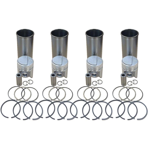One New Aftermarket Sleeve and Piston Kit with 4 OverboreFits International Models I6, M, MV, O6, OS6, T6, W6Tech InfoThis 4cylinder kit has a 4 overboreIncludes sleeves, aluminum stepped head pistons, piston ring sets, piston pins and pin retainersMost other sets available by special order1312 wrist pin ODSleeve OD cold 4124Please be carefulinstalling the sleeves If the bore is not cleaned or honed properly, then the sleeves will break if you apply too much force We are not responsible for sleeves broken during installationReplaces Part Numbers 374264R91, PK155