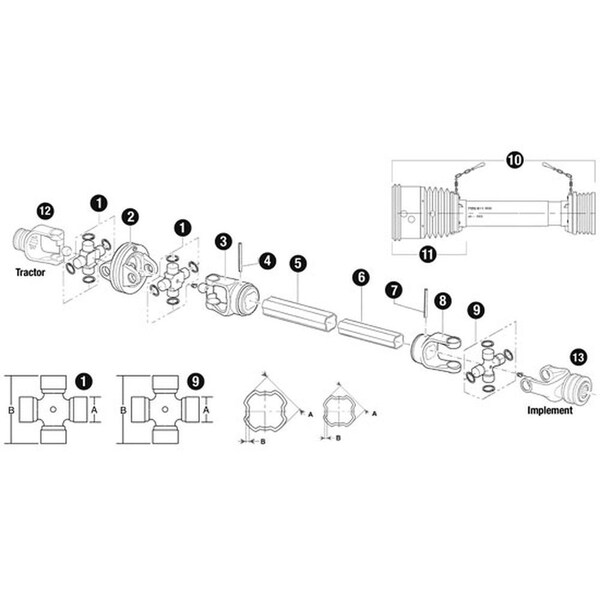 Implement Yoke, Splined 1 38 6 Spline w Tappered Pin