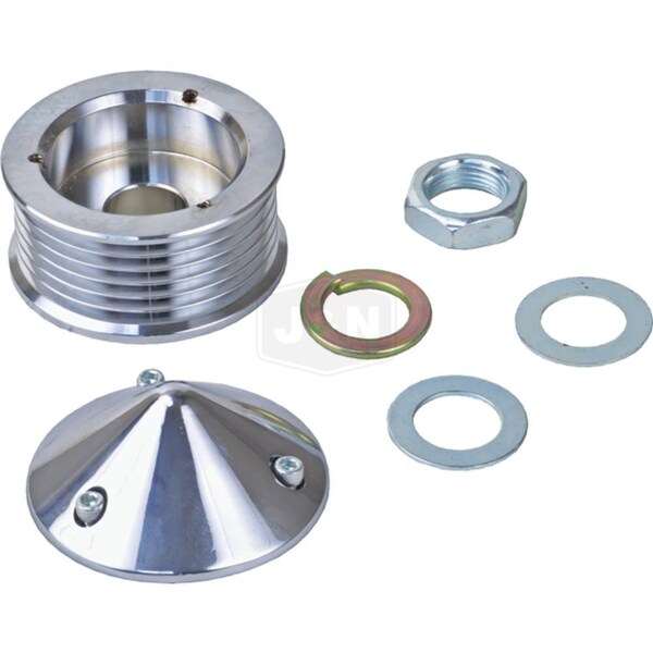 One New Aftermarket Tech Info:-JAndN Electrical Products: 206-01002-: Includes Bullet Nose Pulley Cover @Includes Mounting Hardware, COMPOSITION: Chrome Plated Steel, GROOVE OD: 2.185, GROOVE OD: 55.500mm, GROOVE TYPE: Serpentine, ID: 0.669, ID: 17 mm, NUMBER OF GROOVES: 6, OD: 2.362, OD: 60 mm, PULLEY TYPE: Solid, QUALITY TYPE: Premium USA, THICKNESS: 28 mmReplaces Part Numbers: TUF-7653A