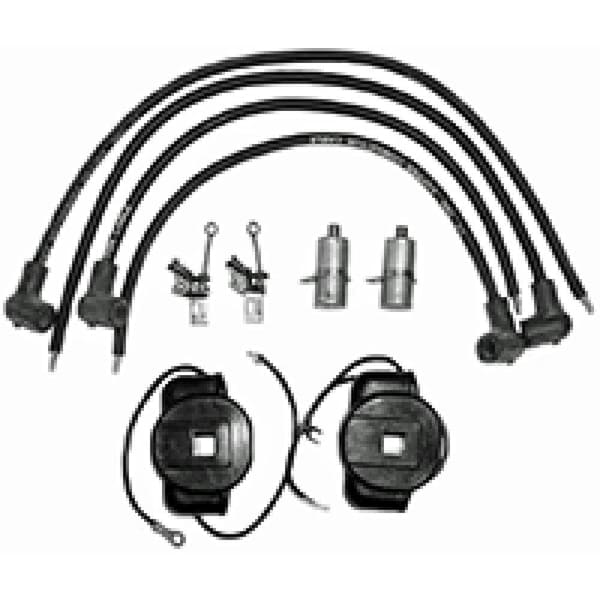 One New Aftermarket Replacement Fits John Deere Pony Starting Motor TuneUp Kit that fits models 70, 720, 730, 80, 820 830, 2 CylinderTech InfopbConsists of b2 Point Sets, 2 Condensers, 2 Plug Wire Sets, 2 Foreign Ignition Coilsppb PLEASE NOTE bYou may need to snip the end of the Spark Plug Wire if you have a Screw Thread inside the SocketppActual Photo of Kitp