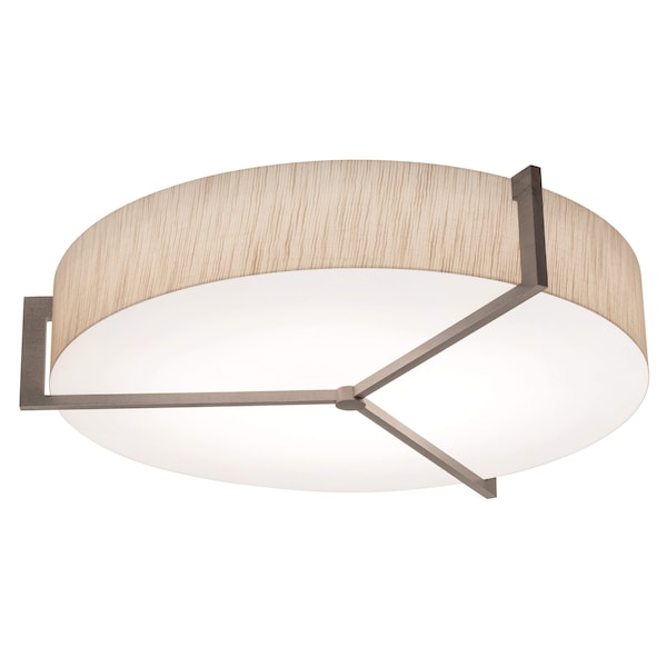 The Apex Flush Mount features solid wood accent bars that grace this contemporary flush mount with a LumaFuseTM laminated fabric/acrylic shade and white acrylic diffuser.