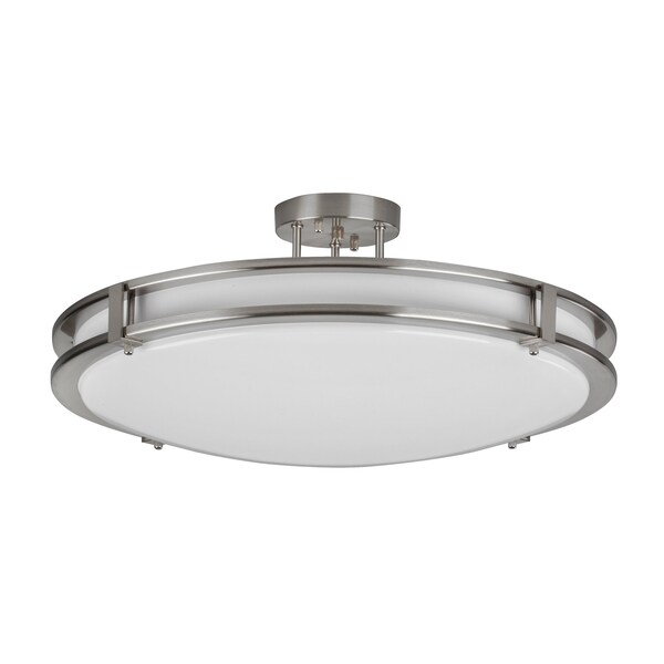 The AFX Carlisle LED Semi-Flush Light boasts a unique design with metal trim bands and is a great addition to any modern home. This energy-efficient semi-flush light fixture features a large white acrylic diffuser that provides an ample distribution of light. The Carlisle LED Semi-Flush Light is available in three sizes and with a battery back-up option. | 3-in-1 CCT,cETLus,Dimmable,Energy Star,Title 24 | Modern LED semi- flush mount with metal trim bands. | White Acrylic diffuser offers an even, wide distribution of light. | Available in three sizes. Battery back-up also available.