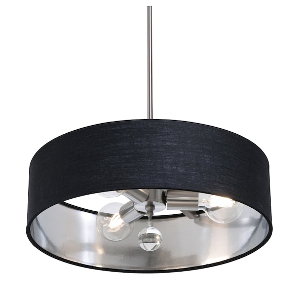 Celine Pendant, 18 in., Satin Nickel Finish, Black/Silver Shade