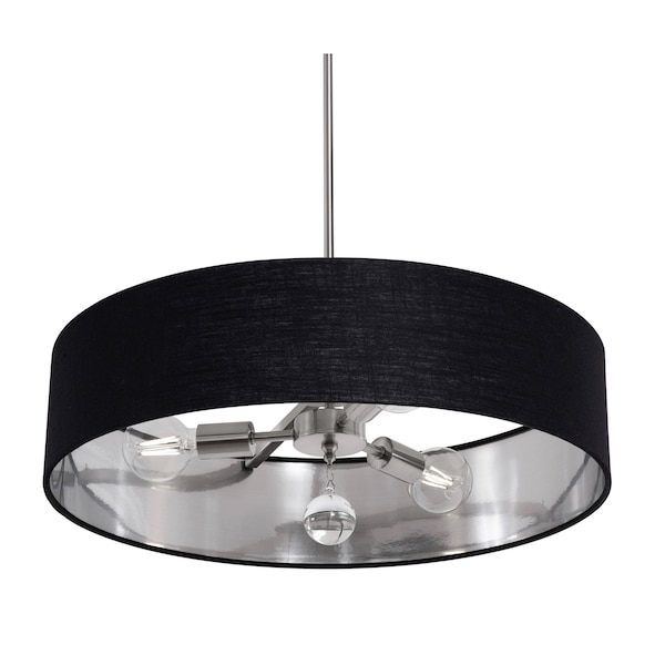 Celine Pendant, 24 in., Satin Nickel Finish, Black/Silver Shade