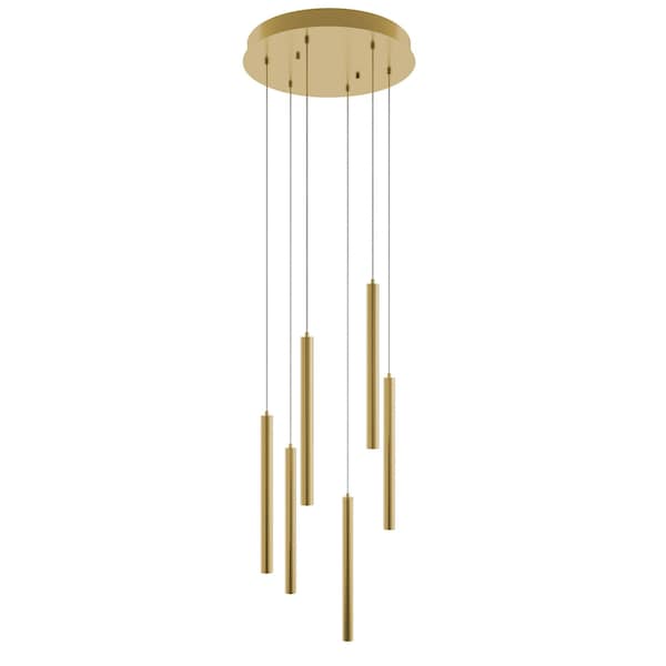 Eli Six Pendant, 54W 120 277V, Satin Brass