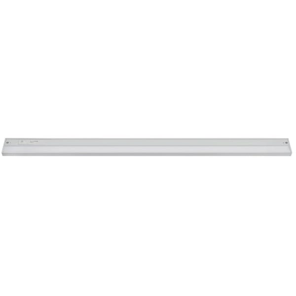 Low profile LED undercabinet in extruded aluminum housing. Only 1'' depth. Linkable up to 200W. Hi/Low switch. Selectable 4 CCT color changing switch. Rear access plate for easy wiring. Captive mounting screws. Direct wire or plug-in with power cord and connecting cables sold separately. Available in five lengths. | TRIAC/ELV | 4-in-1 CCT | Frosted acrylic diffuser