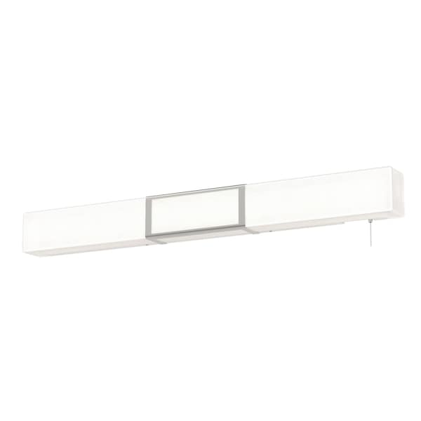 The AFX 48” LED Overbed Wall Light features a modern, rectangular design with Satin Nickel accents. This wall light fixture includes an acrylic diffuser and an on/off pull chain for easy operating. The simplistic design fits well with many styles of home decor.
