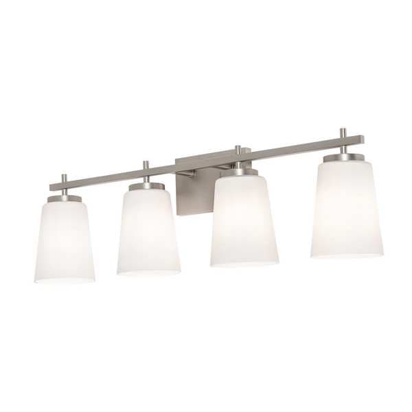 Joanna 33 In. Vanity, Diameter Not Applicable, Overall Length 32 1/4 in, Series JNNV33, Light Output Not Applicable, Color Temperature Not Applicable, Color Rendering Index Not Applicable, Maximum Fixture Wattage 60 W, Voltage 120V AC, Overall Height 9 1/2 in, Overall Width 6 in, Housing Color Silver, Housing Finish Satin Nickel, Housing Material Metal, Dimmable Yes, Lens Material Glass, Compliance Type Not Rated, Lighting Technology Incandescent