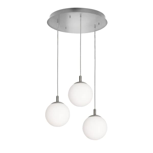 Create a crisp and inviting atmosphere in your kitchen or dining room space with the Loretto Triple Pendant. Sporting a sleek satin nickel finish and strong steel base, this overhead light fixture instantly upgrades the look and feel of any space. Situate this modern light fixture over top your kitchen island or dining room table for a dramatic effect. / This Pendant is designed for residential or commercial use with hardwire installation only / Dimmable capability with dimmable bulb only. / Satin Nickel Steel Finish