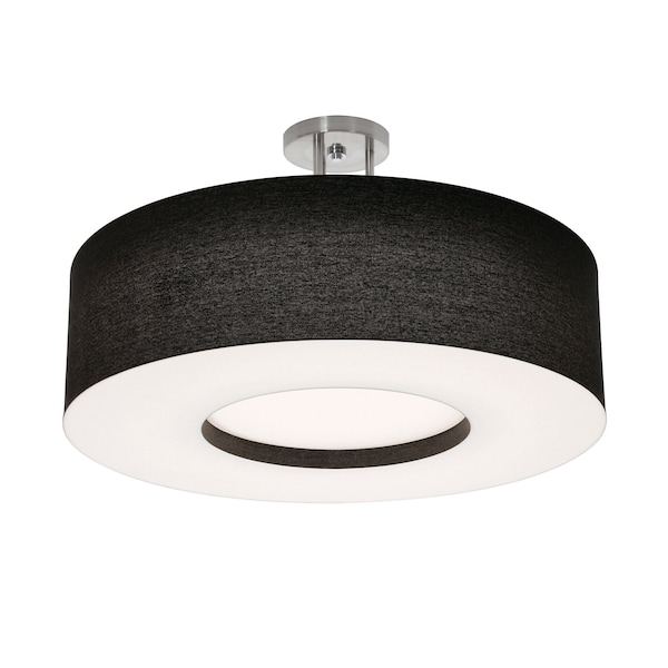 Montclair 24in. Medium Base Semi-Flush Mount, Satin Nickel Finish, Black Shade