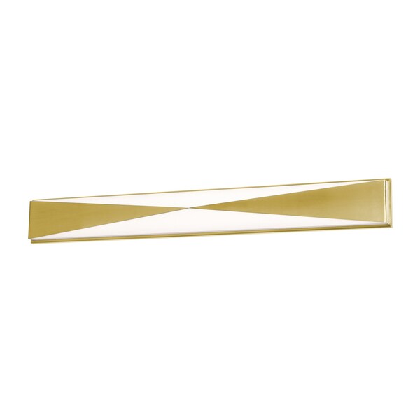 Great for any modern or contemporary home, the AFX 25” LED Vanity Light in Satin Brass features a crisp angular design. This bathroom vanity light is constructed with metal housing and face panels and a white acrylic diffuser. The light fixture is able to be mounted vertically or horizontally.