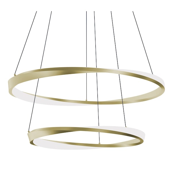 Enhance your living room or dining area with the stylish Oberon pendant. This contemporary piece features a double ring design, offering a modern chandelier feel that adds a sophisticated touch to any space. With integrated lighting, it provides an efficient 80W illumination, making it a standout overhead accent for your home decor.