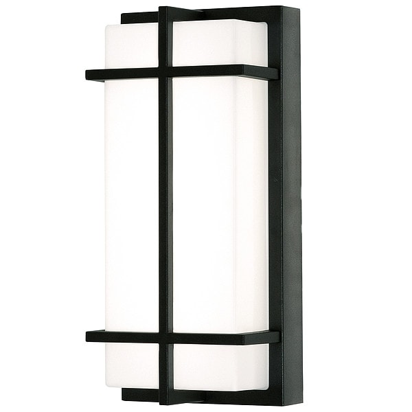 OutdoorLEDSconce, Lumens 2,800 lm, Fixture Wattage 26 W, Voltage 120 to 277V AC, Light Distribution Shape NEMA 4X4, Light Technology LED, Color Temperature 3000K, 3500K, 4000K, Color Rendering Index 80, Height 3 27/50 in, Width 5 51/100 in, Includes Lamp Lamp Included, Rated Life 50,000 hr, Fixture Housing Color Black, Standards CA Title 24, cETLus, JA8 Compliant