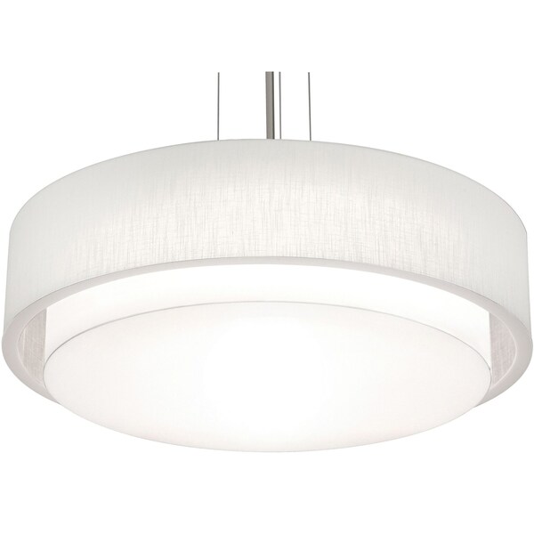 Modern drum pendant features an outer LumaFuse laminated fabric/acrylic shade that is durable and easy to clean. Inner white acrylic diffuser disperses the light evenly. Available in four sizes and two finishes. 3 ft. adjustable ridged stem and aircraft cable. | 0-10V 120-277V & TRIAC/ELV 120V | 5-in-1 CCT | White acrylic diffuser
