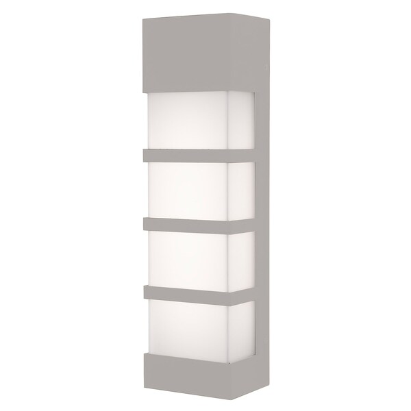 Modern Elegance Meets Durable Performance: The Contemporary LED Outdoor Sconce crafted from die-cast aluminum with a sleek powder coat finish, this outdoor sconce blends contemporary style with weather-resistant durability. Its decorative metal bands add architectural interest, while the white acrylic diffuser delivers soft, evenly distributed illumination. With an optional photo cell for effortless dusk-to-dawn operation, this fixture is perfect for elevating your porch, patio, or entryway with stylish, energy-efficient lighting.
