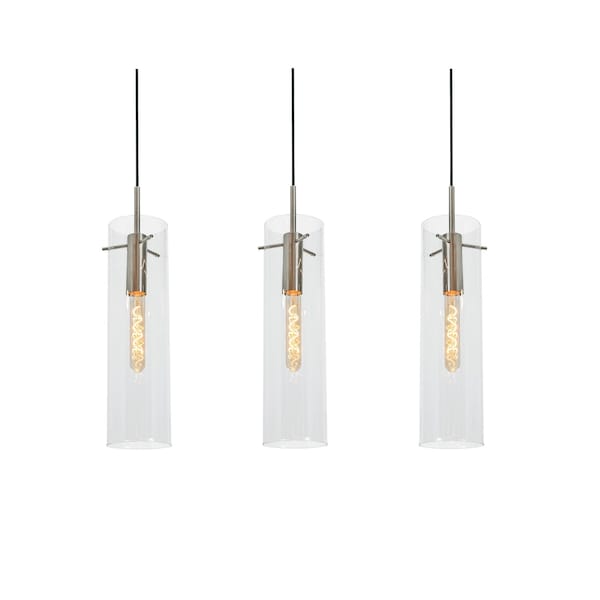 - The sleek 3-light linear design with cylindrical glass shades adds a modern, sophisticated touch to any dining area or kitchen island.