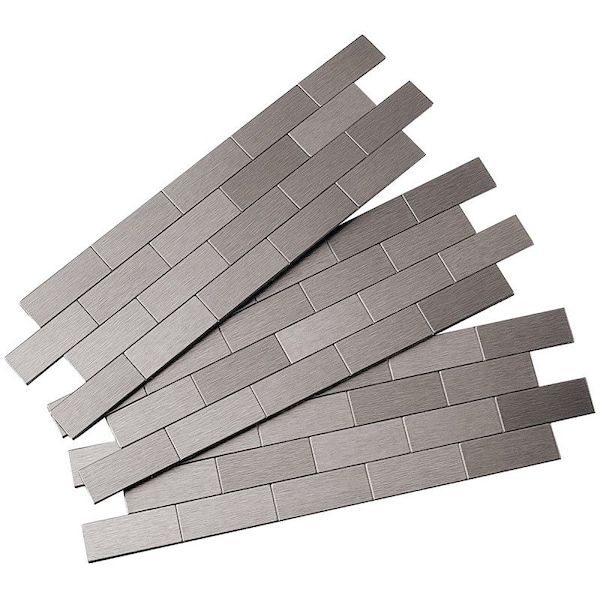 Wall Tile, 12 in L, 4 in W, 1/8 in Thick, Aluminum/Polymer, Brushed Stainless Steel