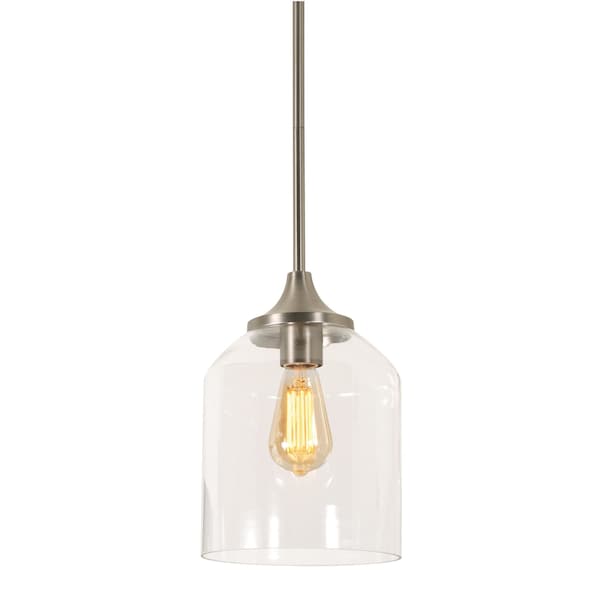 An elegant interpretation of vintage style for the modern home, the William Pendant by AFX features a bell shaped clear glass shade that lends uniqueness and shape to its Edison-style bulb. This light includes with multiple rigid stems in sleek metal to enable adjustable hang height for a variety of uses in the home. It's a classy finishing touch for living rooms, kitchens, dining areas, and much more. Dimmable: TRIAC/ELV Bell shaped clear glass shade Also available in 6" size Comes with multiple rigid stems for an adjustable hang height