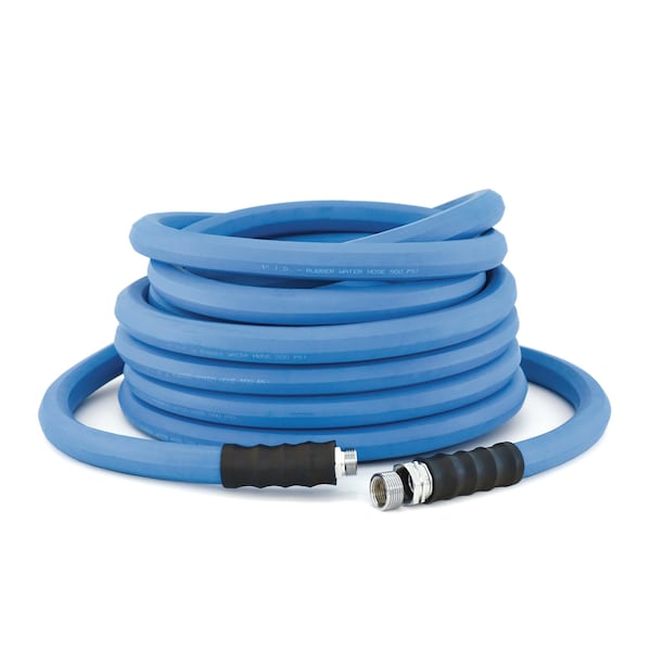 1 in ID x 50 ft L Water Hose Assembly, Rubber Tube, Blue, Rubber Fitting