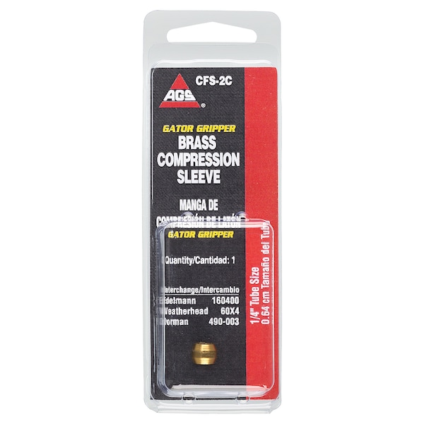 Brass Compression Sleeve, 1/4 Tube, 1/card