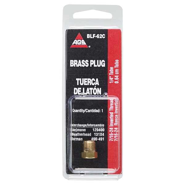 Brass Plug, 1/4 Tube (7/16-24 Inverted), 1/card