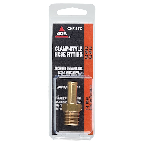 AGS Male Clamp Hose Fittings Are For Low-Pressure Multi-Purpose Hose Applications. To Assemble, Cut Hose Squarely. Slide Clamp Onto Hose And Then Lubricate. Push Hose Onto Fitting Until Bottoming Out. Position Clamp Between Fitting Ball And End Of Hose. Working Temp (Pressure): -40 Degrees F To 250 Degrees F (60 Psi). Applications Include Fuel, Oil, & Vacuum. AGS Brass And Steel Fittings Are Comprised Of Tube Nuts, Unions (Couplers), Adapters, Elbows, Tees, Bushings, Connectors, Grease, Etc... AGS Fittings Are Held To The Strictest Standards To Perform Flawlessly In Their Intended Applications. Fittings Are Offered In A Variety Of Packaging Options, Including: Retail Clam-Shells, Bulk Boxed, And Plastic Tray Assortments.