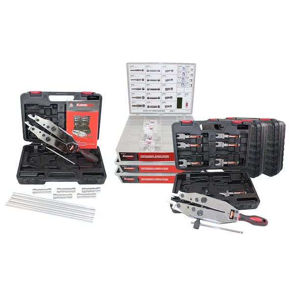 The Kledge-Lok Professional A/C Tubing Repair Kit (Starter/Demo) Comes With A Demo Kit (Acrk-Demo) Consisting Of The Kledge-Lok Tool With 1/2" Jaws And Enough 1/2" Fittings (5) And 1/2" Tubes (4) To Perform 9 Separate Demonstrations. This Demo Kit Is Intended For Demo'S Only. The Acrk-1000 Also Comes With Three Starter Kits (Acrk-Starter). The Acrk-Starter Consists Of A Complete Kledge-Lok Tool And A Smaller Kledge-Lok Fitting Assortment Consisting Of 1 Each Of The 5/16", 5/8", And 3/4" Tube To Tube Fittings And 2 Each Of The 3/8" And 1/2" Tube To Tube Fittings (As Well As An Abrasive Pad And Anaerobic Sealing Compound). The Acrk-1000 Allows The Mobile Tool Professional The Ability To Demo The Kledge-Lok System And Also Offer A Very Economically Attractive Way To Sell His Customer. -1 Demo Kit For Demonstrating The System -3 Starter Kits For The Professional Mechanic -Permanent Leak Repair -Saves Time And Money -Professional OE-Style Repair -Tested To Over 2000 Psi (4X Normal Operating Pressure) -Compatible With All Refrigerants And Oils