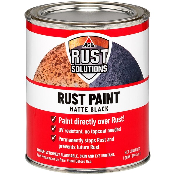 Stop rust from spreading, seal out moisture, and prevent further corrosion with UV-Resistant rust paint. Easily apply directly over surface rust. Quickly run a wire brush over the rusty area to remove any loose pieces, then simply spray or paint on with any brush. No need to topcoat, unless desired. Applies directly over rust, Super durable; rated up to 300oF (149oC), Matte black finish, Coverage: 40 square feet.