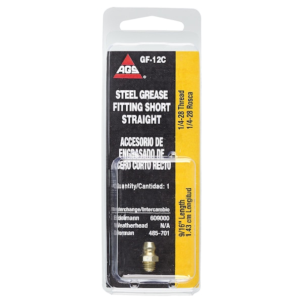 Steel Short Grease Fitting, 9/16 Length, Male (1/4-28), 1/card