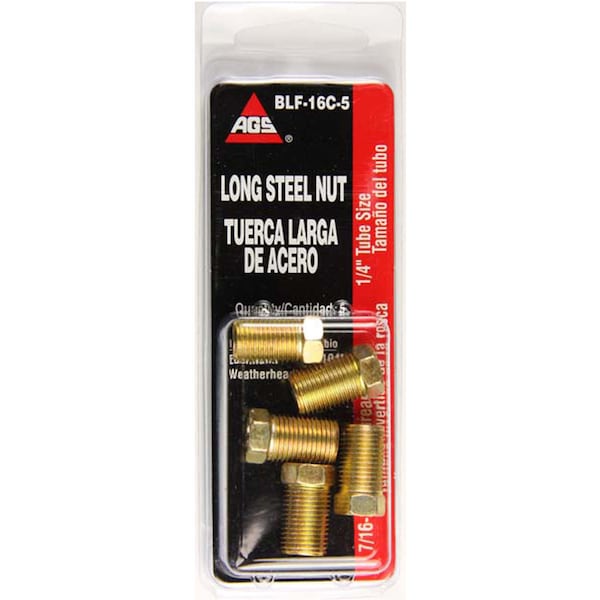 Steel Tube Nut, Long, 1/4 7-24 Inverted, 5/card, PK5