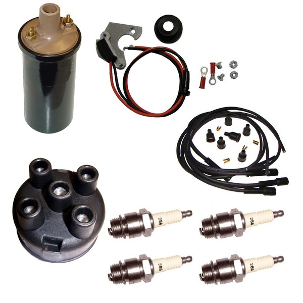 One New Aftermarket Replacement 12V Electronic Distributor Ignition Conversion Kit Fits IH Fits FARMALL TractorKit Contains:1 Distributor 'HOT' Coil1 Distributor Cap1 Spark Plug Wiring Set 4 Cyl.1 Electronic Ignition Module4 Spark Plug1 Rotor Fits 4 Cylinder Fits IH Fits FARMALL Models: A, A1, AV, AV-1, B, BN, C, Fits Cub, Fits Cub Loboy, H, H50 Hough, HV, I4, I6, I9, ID6, ID9, M, MD, MDV, MTA, MTAV, MV, O4, O6, ODS6, OS4, OS6, Super A, Super A-1, Super AV, Super AV-1, Super C, Super H, Super HV, Super M, Super MD, Super MDTA, Super MDV-TA, Super MTA, Super MV, Super MVTA, Super W4, Super W6, Super W6TA, Super W9, Super WD6, Super WD6TA, Super WD9, Super WDR9, T340, T4, T5, T6-61, T9, TD14, TD14A, TD6-61, TD9-91, W4, W6, W6TA, W9, WD6, WD9, WDR9, WR9, WR9S, 100, 130, 140, 154, 184, 185, 200, 230, 240, 300, 330, 340, 3444, 350, 400, 404, 424, 444, 450, 504, 600 with IH Distributor