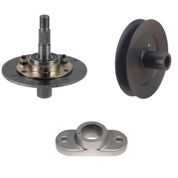 One New Aftermarket Replacement ''42 Cut Spindle Kit Fits MTD 717-0906, 748-0300, 917-0906AIncludes:1 Spindle1 Pulley1 AdaptorSpindles Description:Spindle Assembly Fits 42 Cut MTD F Deck Model 600 SeriesReplaces MTD #'s 917-0906A, 717-0906, 717-0906A and 917-0906Adaptors Description:Replaces MTD OEM # 748-0300Splined AdaptorPulley Description:ID: 3/4 splined OD: 5 1/2Width: 2-1/2