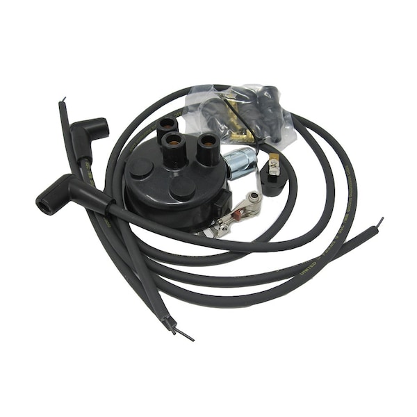 One New Aftermarket Replacement Spark Plug Wires, Points, Cond., Rotor, & CapFits John Deere Models:A, AH, AN, ANH, AO, AR, AW, AWH, B, BN, BNH, BW, BWH, BWH40, D, G, GH, GM, GN, GW, 50, 60, 70 GasFits John Deere 2 Cylinder with Horizontal Fits Delco DistributorKit Contains:1 Ignition KitContains Points, Condenser, and RotorFits Delco Distributors w/ Clip Held Cap1 Spark Plug Wiring SetSpark Plug Wiring Set with 90 Degree Boots 2 CylFits 2-cylinder models.Premium united packard wire.Graphite carbon core with waterproof silicone outer jacket.Cut to length.Highest quality on the market.Note: Use with electronic ignitions1 Distributor Cap