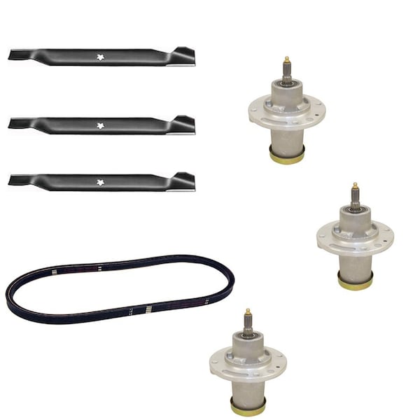 One Brand New Aftermarket Replacement Mower Deck Rebuild KitFits Husqvarna Mowers with 52 Deck Kit Contains:3 Spindles,3 Blades21 Long5 Point Star CH2-1/4 Wide1 Deck Belt.5/8 x 163.5 Made With AramidReplaces Part Number:Belt: Fits Husqvarna 522795901, 539104335Blades: Fits Husqvarna 532127843, 532138498, 532138971Spindles: Fits Husqvarna 539112170Kit Components Also Available Separately - Please See Our Other eBay Listings!