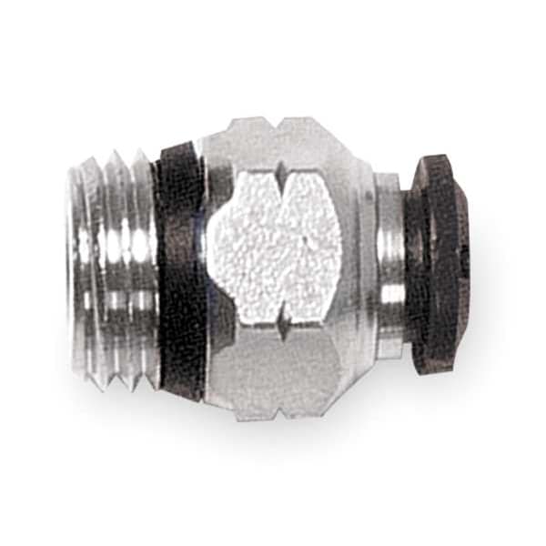 Push-Fit Adapter Fitting, Application Vacuum, Fitting Side A Connection Type Push-to-Connect, Fitting Side B Connection Type Universal, Fitting Side B Pipe Size 3/8 in, Fitting Side A Tube Outer Diameter 6 mm, Fitting Material Brass, Fitting Thread Size 3/8, Color Silver, Includes Pre-Applied Thread Sealant Pre-Applied Thread Sealant Included, Maximum Operating Pressure 290 psi, Maximum Operating Temperature 160 Degrees F, Overall Length 1 1/4 in, Specific Fitting Shape Straight Adapter