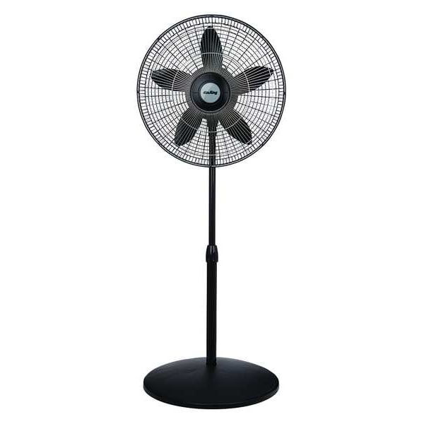 Pedestal Fan, Overall Style - Fans Pedestal, Fan Mounting Location Pedestal, Number of Speeds 3, Blade Dia. 18 in, Oscillating, Air Flow (CFM) 1950/1680/1380, Fan Cord Length 6 ft, Fan Power Source Plug-In, 114/85/83 W Watts, 1100/950/800 RPM RPM, Number of Blades 5, Fan Voltage 120 V AC, Fan, Length 20-1/4 In., 0.85/0.67/0.59 A Amps, Height 53 3/4 in, Width 20 1/4 in, 60 Hz Hz, Blade Material Polypropylene, Powder Coated Steel Front with High Impact Resistant Plastic Rear, 3, 5-15P, Black