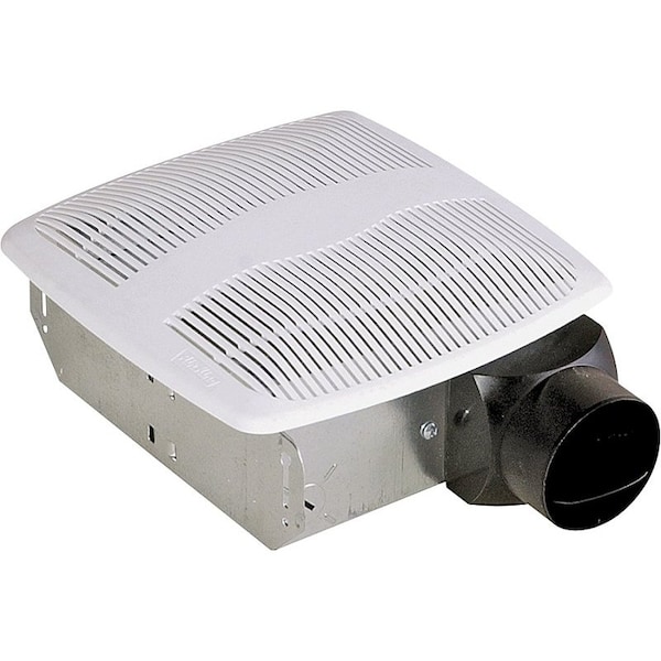 White polymeric grill. One-piece polymeric wheel. Plastic collar for 3 in duct connection, comes complete with built-in non-metallic back draft damper for quiet operation. Rated for ceilings insulated to R-40. UL listed for installation over a tub or shower on a GFCI circuit. HVI2100 certified. Grill dimension of 10 x 9-1/2 in. Housing dimension of 7-1/4 x 7-1/4 x 3-3/4 in.