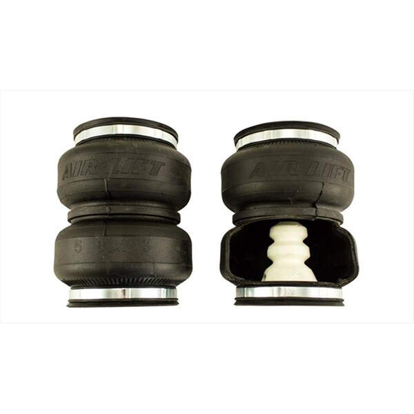 LoadLifter 5000 ULTIMATE air springs are maintenance free! Safely run with zero air pressure because of the internal jounce bumper. Replaces factory jounce bumper that is sometimes removed when adding air springs. The closed-cell urethane foam jounce bumper inside the air spring provides a cushion of air that absorbs shock eliminates harsh jarring on rough roads and protects vehicles carrying heavy loads. Air springs are built like a tire and are reinforced by durable 2-ply fabric for maximum strength. Exclusive upper and lower roll plates are included which protect the springs from sharp edges such as brackets or the frame and help increase load capacity up to 10%. Features -2 air springs -All necessary mounting brackets. -Air lines. -Schrader valve. -All of the hardware needed for installation. -A fully illustrated instruction manual. -Internal jounce bumper prevents damage when driving with an empty air bag -Exclusive Air Lift air spring kit -Up to 5 000 lbs. of load-leveling capacity
