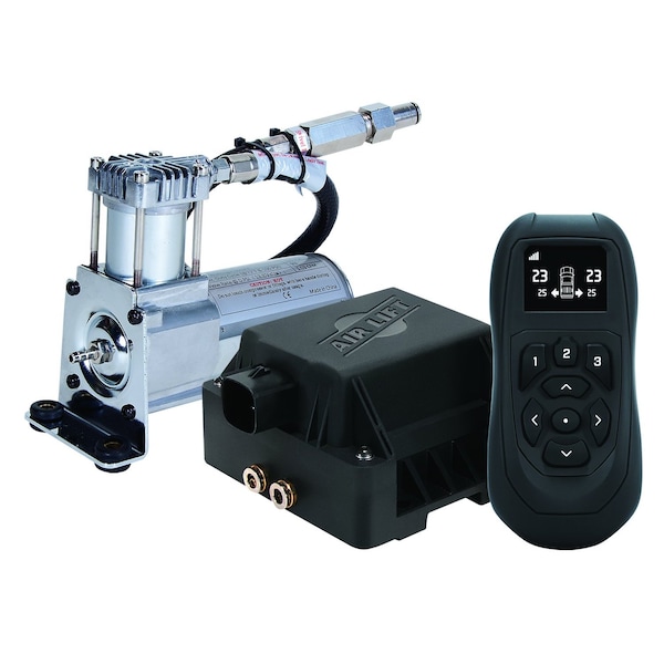 For Use With Air Lift Gen II WirelessAIR Compressor System; Dual Path Controls 2 Air Springs Independently; With Compressor/ Wireless Manifold/ Wireless Control/ 1/4 Inch Air Line/ Fittings/ Wire Harness/; Wireless Control