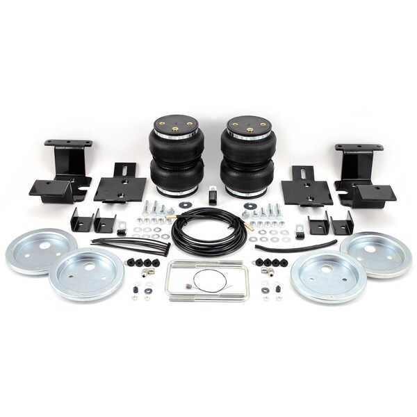 Air Spring; Frame Mount; Upto 5000 Pounds Of Leveling Capacity; Air Adjustable From 5 To 100 PSI; 2-Ply Fabric Reinforced Rubber; With Air Springs/ Brackets/ Roll Plate/ Air Lines/ Fittings/ Valves/ Installation Hardware; Air Compressor Sold Separately