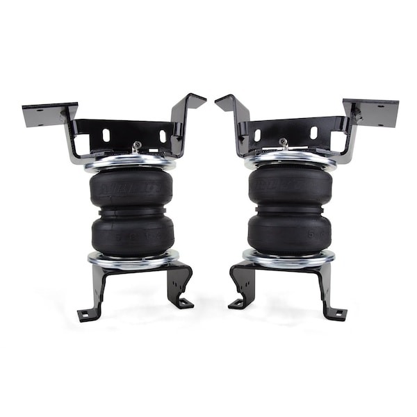 Air Spring; Frame Mount; Upto 5000 Pounds Of Leveling Capacity; Air Adjustable From 5 To 100 PSI; Rubber; With Air Springs/ Brackets/ Roll Plate/ Air Lines/ Fittings/ Valves/ Heat Shield/ Installation Hardware; Air Compressor Sold Separately