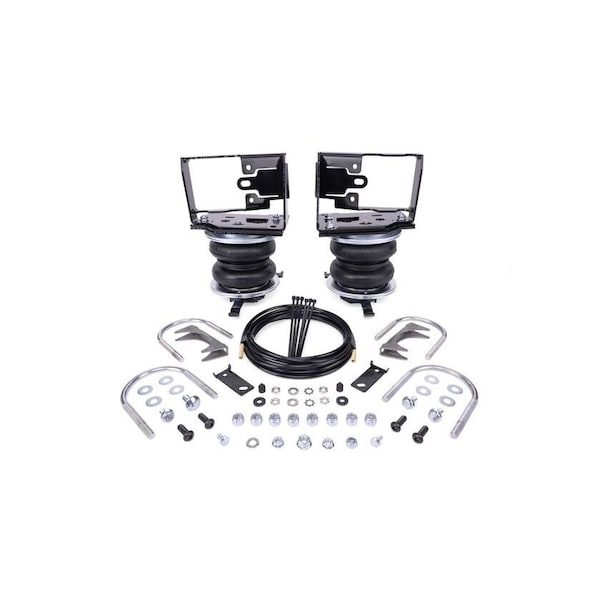 Air Spring; Frame Mount; Up To 5000 Pounds Of Leveling Capacity; Air Adjustable From 5 To 100 PSI; Rubber; With Air Springs/ Brackets/ Roll Plate/ Air Lines/ Fittings/ Washers/ Valve Cap/ Mounting Hardware; Air Compressor Sold Separately