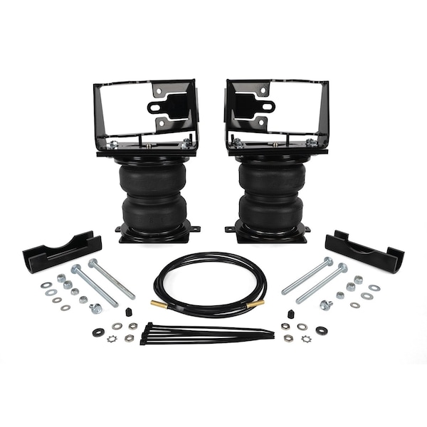 Air Spring; Frame Mount; Upto 5000 Pounds Of Leveling Capacity; Air Adjustable From 5 To 100 PSI; Rubber; With Air Springs/ Brackets/ Air Lines/ Valves/ Installation Hardware; Air Compressor Sold Separately