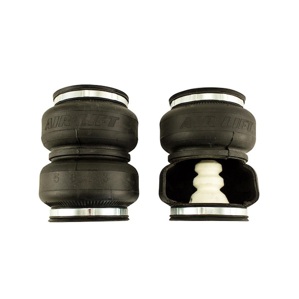 Internal jounce bumper prevents damage when driving with an empty air bag Exclusive Air Lift air spring kit Up to 5 000 lbs. of load-leveling capacity Features -2 air springs -All necessary mounting brackets -Air lines -Schrader valve -All of the hardware needed for installation -A fully illustrated instruction manual Specifications - Dimensions: 9.2 x 14.1 x 10.8 in.